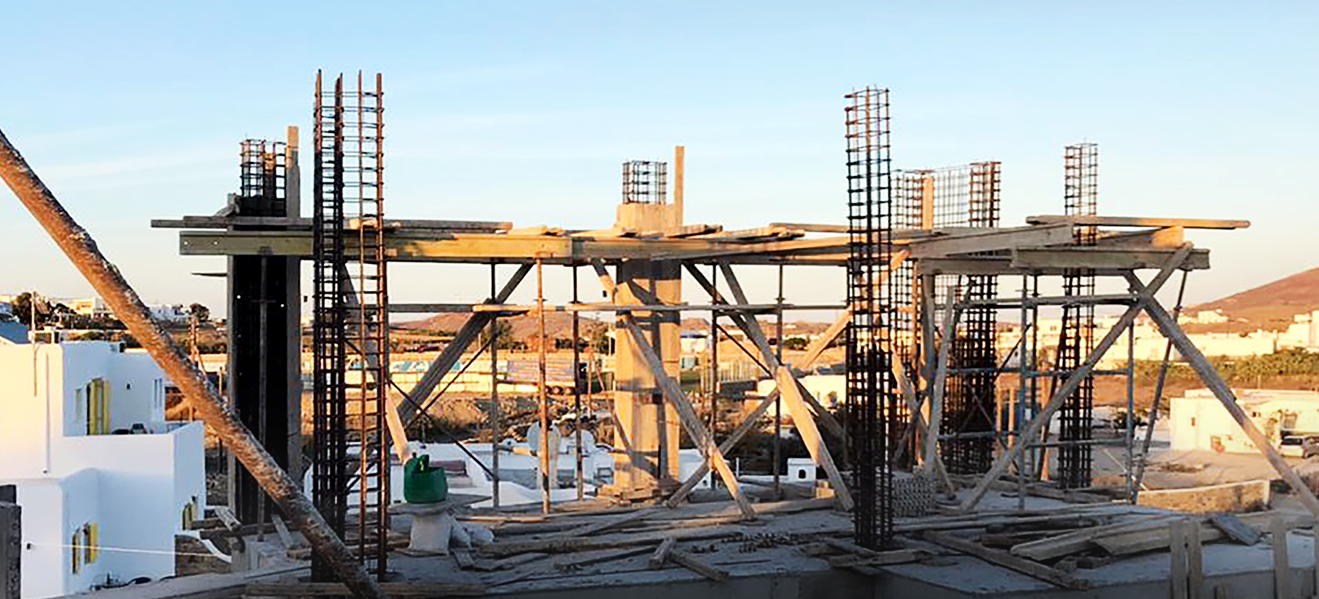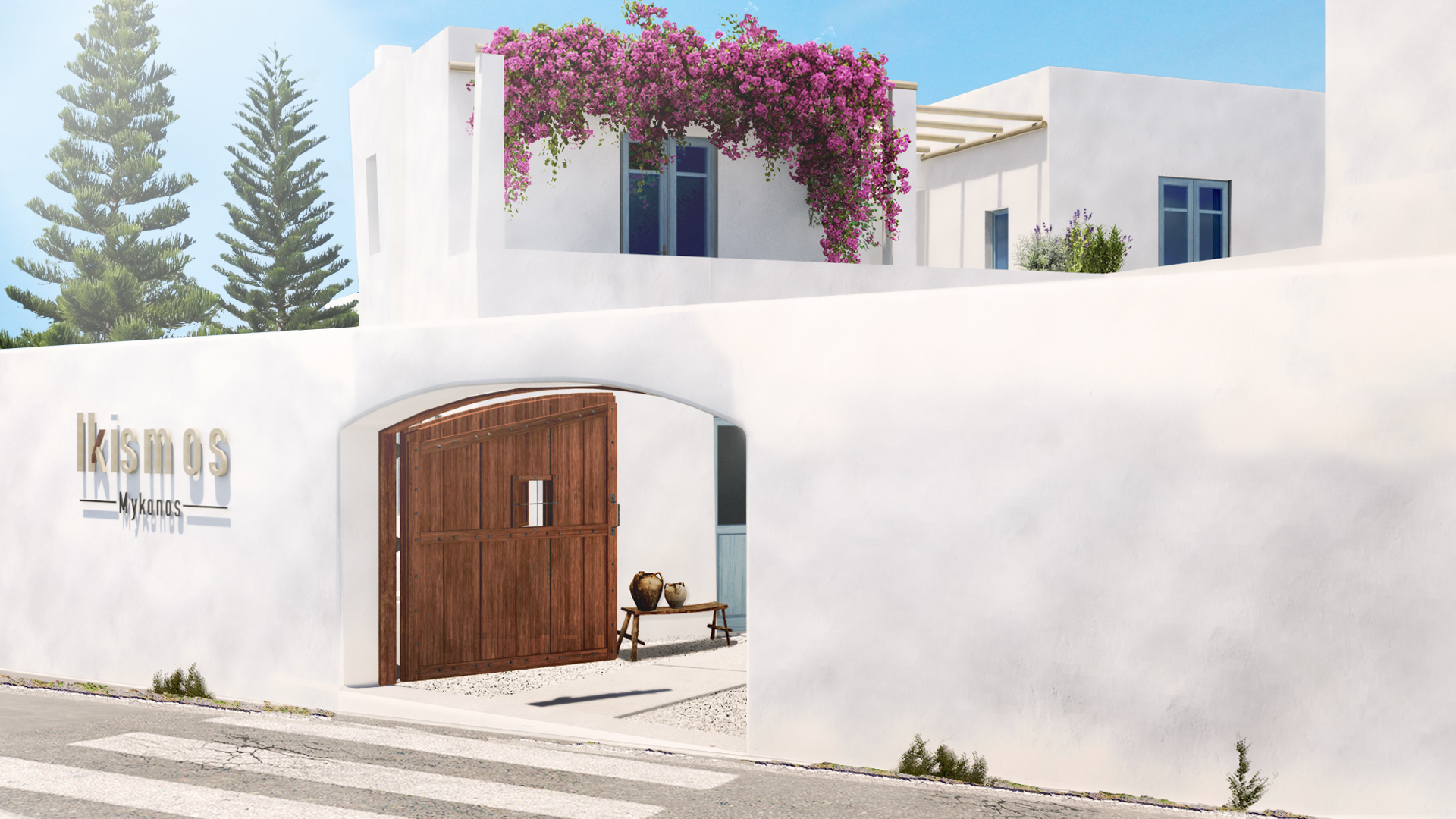The goal of the study team was to build a contemporary building with clear references and influences from the traditional way of building in Mykonos and especially the regional settlements such as Ano Mera. Solid two-story building volumes have been studied with great Myconian-type plasticity achieved by the intense zoning, the addition of architectural projections and recesses and the inclination of parts of the external walls. It has been chosen for the exterior coating of plaster buildings with an anarchic spatulate technique and white color. The balconies follow the traditional building form, having small dimensions and solid parapets or wooden vertical protective elements in the color of natural wood.