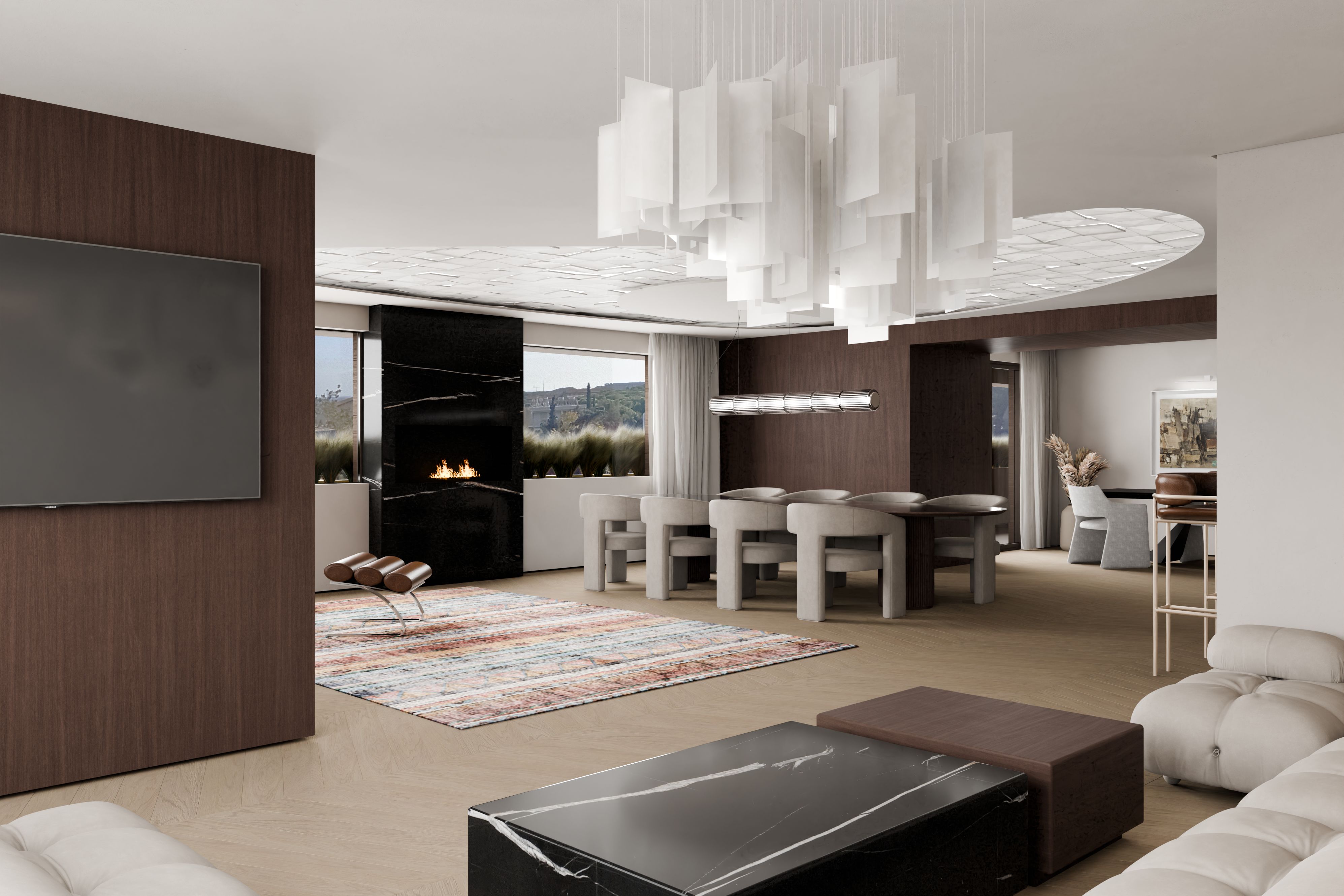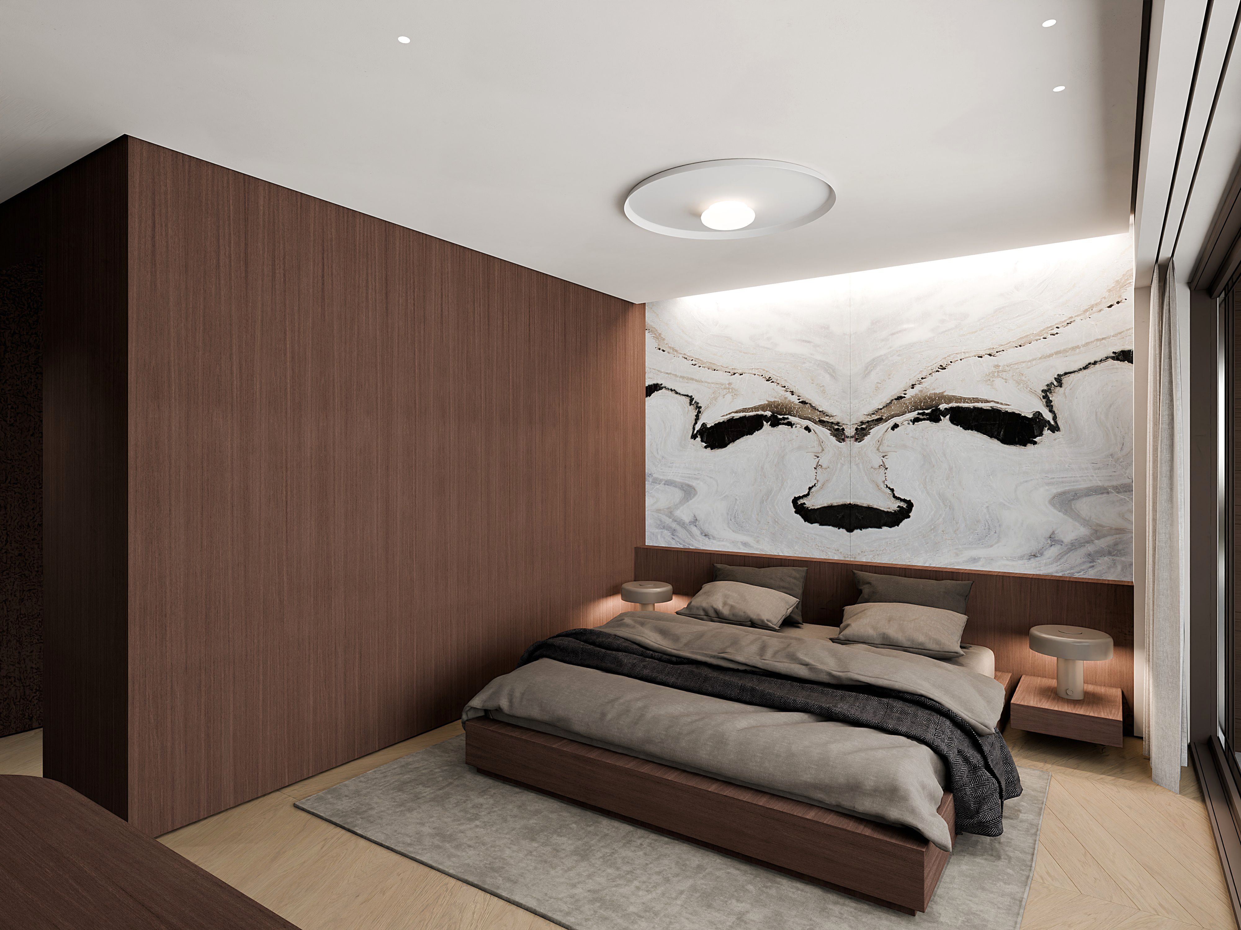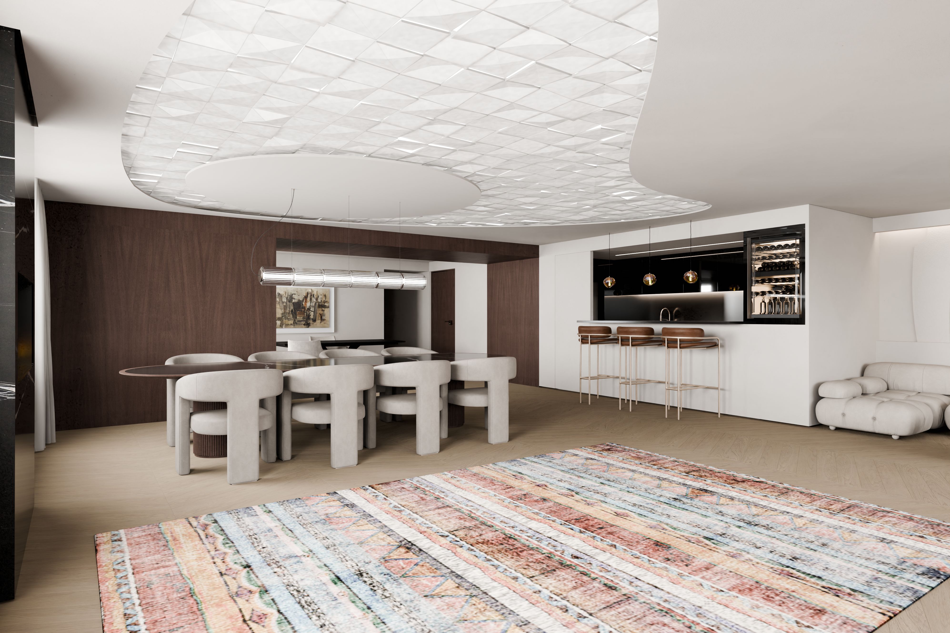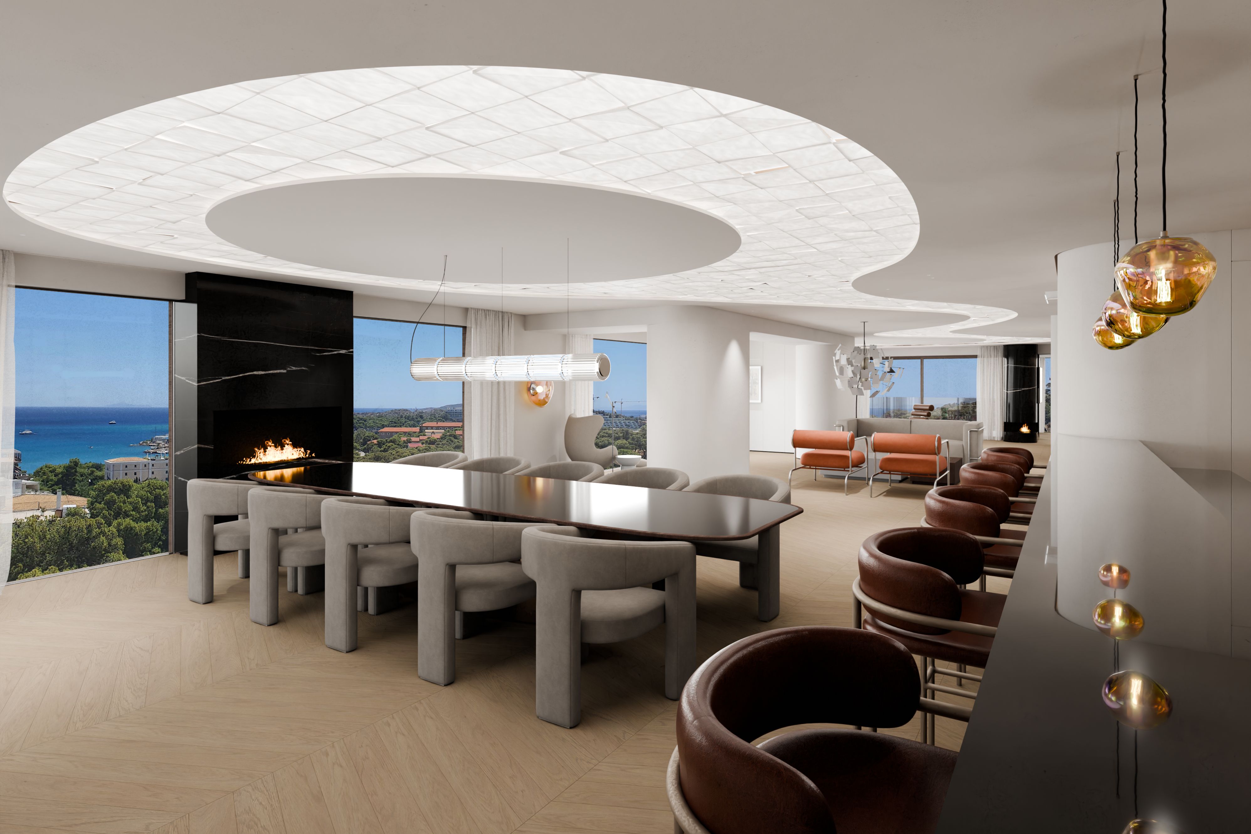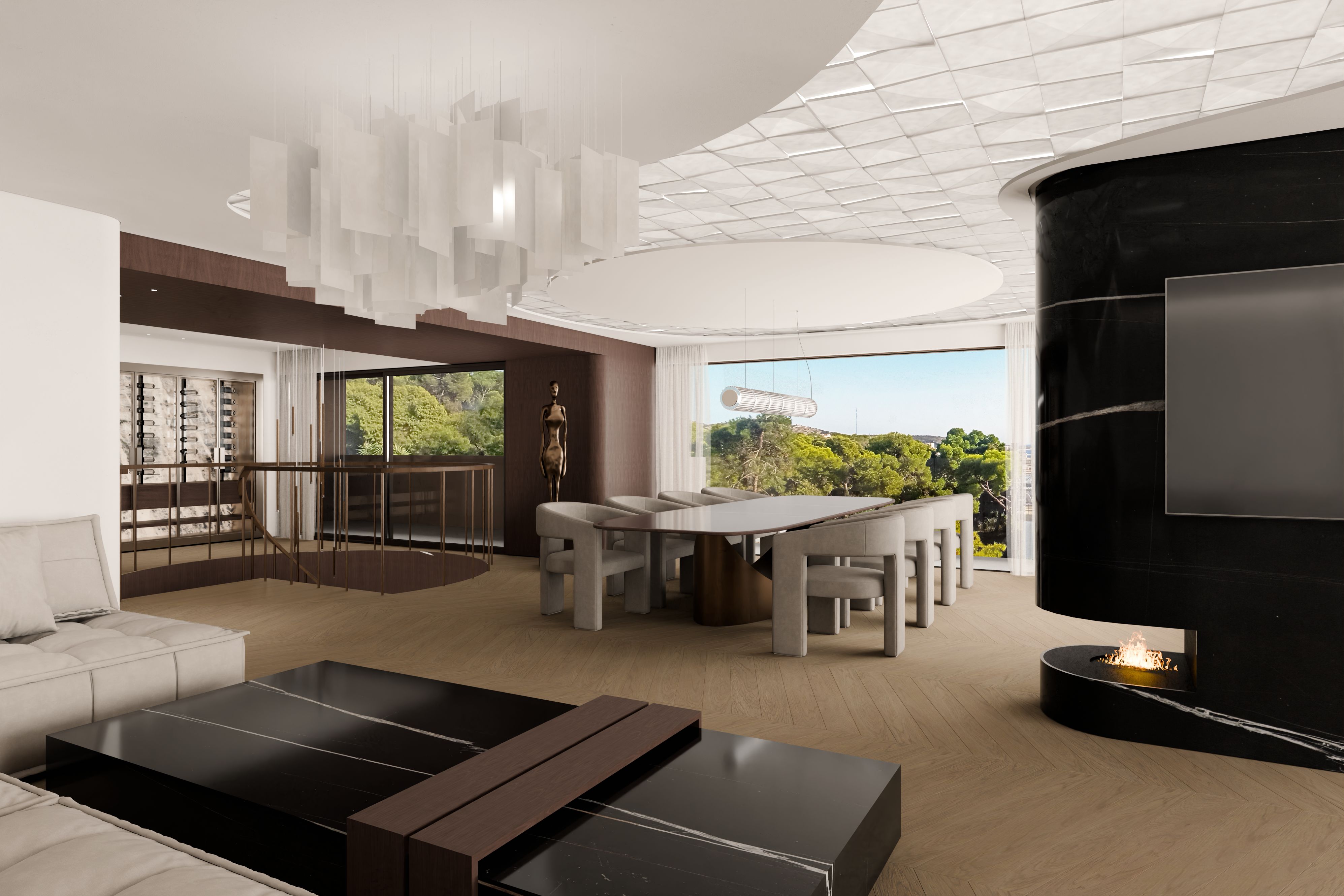 The proposal involves completing part of the basement according to the building permit, along with additional modifications to the internal layouts, alterations to the facades and surrounding areas, as well as the addition of swimming pools in the pilotis, the courtyard on the second floor, and on the rooftop.