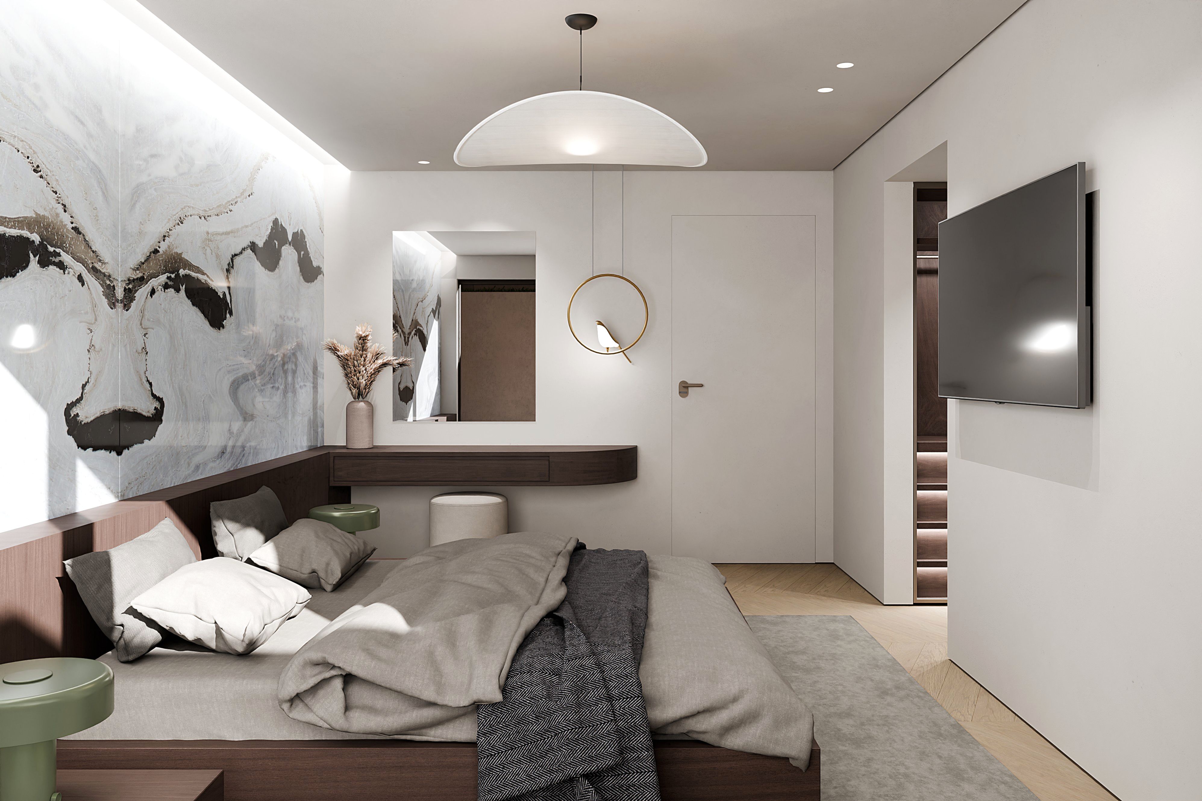 The goal of the design team from the outset was to create a modern, compact, “expressive” building volume that marks the primary functions and differentiates the various residential units. A key design tool is the architectural curved elements/projections designed on the facades, which “unify” the building as a whole, shape different spatial sections, and transitions between the interior space and the exterior, while also being part of the surrounding environment.